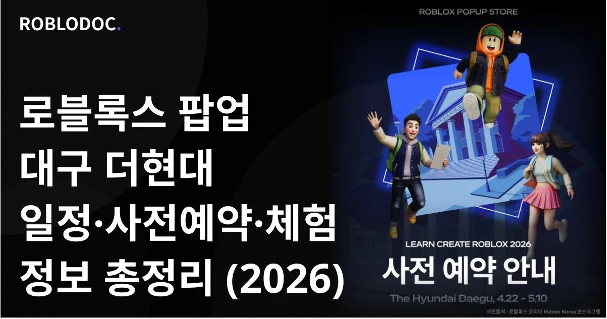 안녕하세요, 로블독입니다.2026년 4월, 로블록스 팝업이 대구 더현대에서 열립니다. 이번 팝업은 'LEARN CREATE ROBLOX 2026...